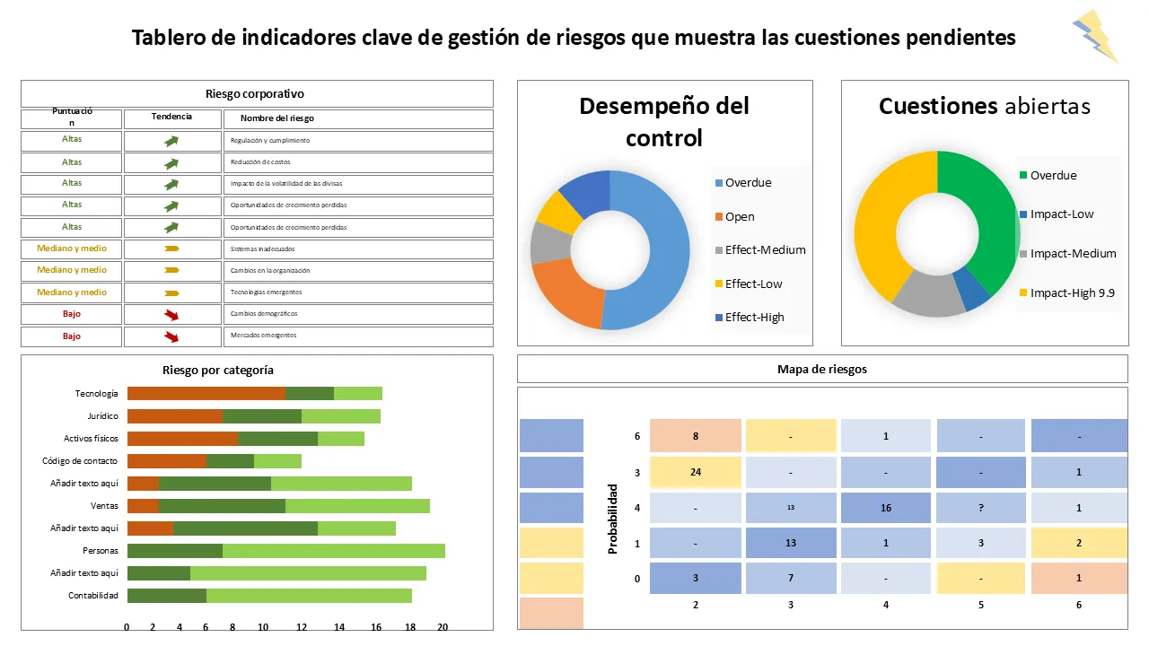 Panel de KPI de gestión de riesgos que muestra los problemas abiertos y el rendimiento del control Plantilla de PowerPoint para presentaciones profesionales