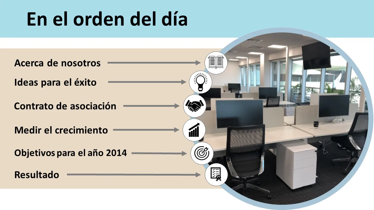 Diseño de plantilla de agenda con imagen cortada con iconos Diapositiva de PowerPoint